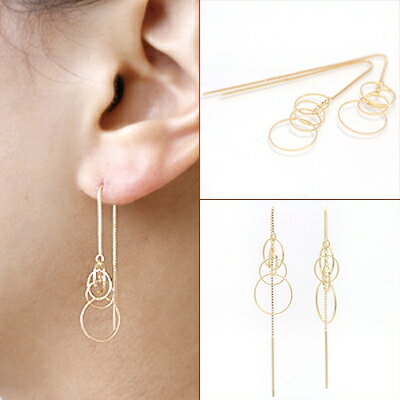 【あす楽対応】アメリカンピアス 18K レディース・オールロンド ゴールドピアス ループが連なる K18 18金 華奢 シンプル チェーンピアス ロングピアス 可愛いピアス カジュアル 揺れるピアス ぶらさがり 大人っぽい 地金 輪っか サークル しゃらしゃら 誕生日プレゼント 女性