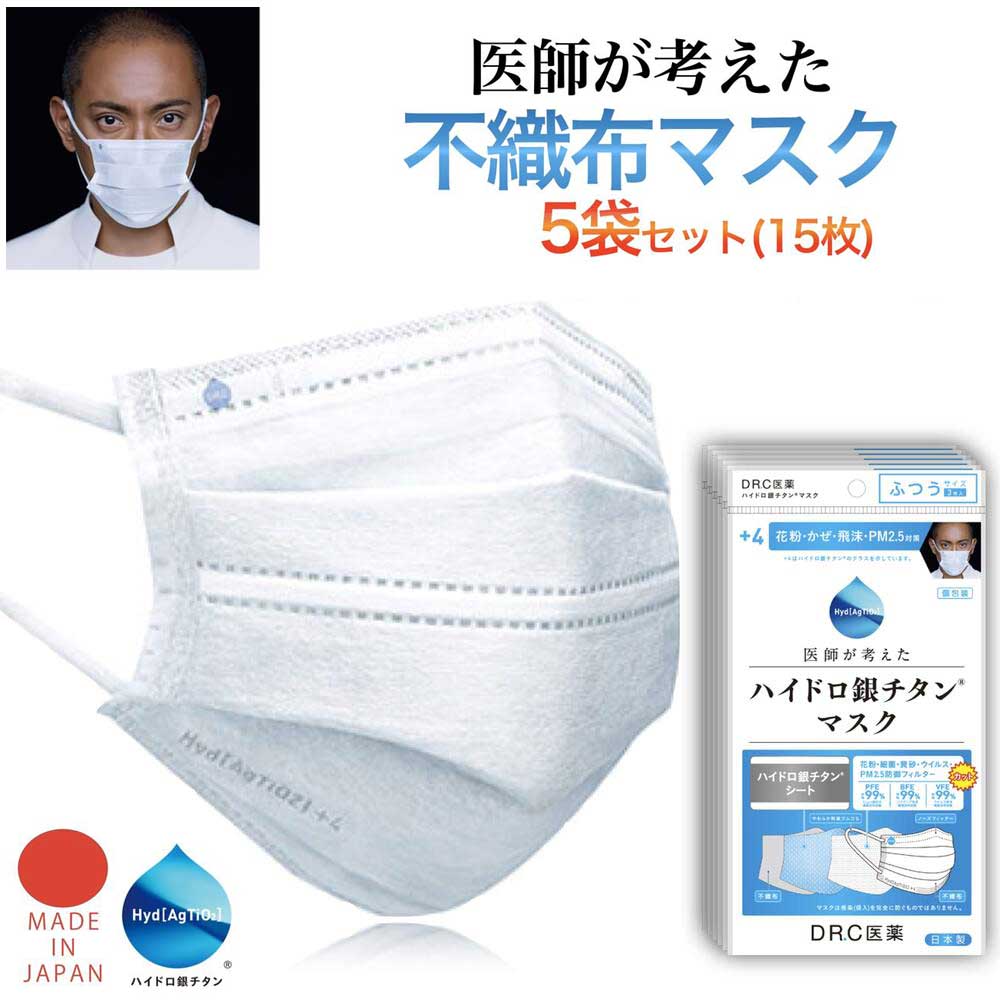 5袋セット ハイドロ銀チタン マスク 日本製 医師が考えた 使い捨て 不織布マスク ふつう 女性 男性 海老蔵 DR.C医薬