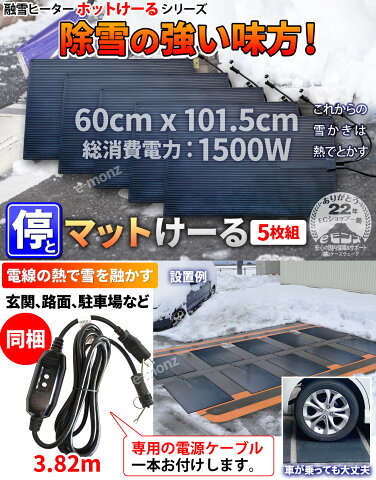 融雪ヒーター 300w ホットけーる マットタイプ 5枚 【 停マットけーる 5枚 】融雪 パッド マット 雪下ろし 発熱 電熱 屋根融雪 雪下ろし 凍結防止 凍結 車 窓 窓ガラス 屋根 玄関 解氷 積雪 豪雪 除雪 消雪 電熱 除雪 ホットケール