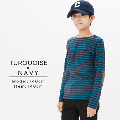 ボートネックボーダーバスクシャツ・キッズ 子供服 子ども服 ジュニア 男の子 女の子 ボーイズ ガールズ 長袖 ロンT Tシャツ カットソー トップス 肘当て エルボーパッチ カジュアル アメカジ ナチュラル アウトドア キャンプ 90 100 110 120 130 140 150 160